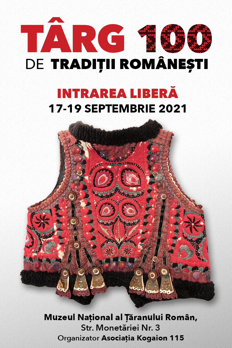 Asociaţia Kogaion 115 organizează Târgul 100 de Tradiții Românești, în curtea Muzeului Naţional al Țăranului Român, în perioada 17 - 19 septembrie 2021. Intrarea este liberă.
