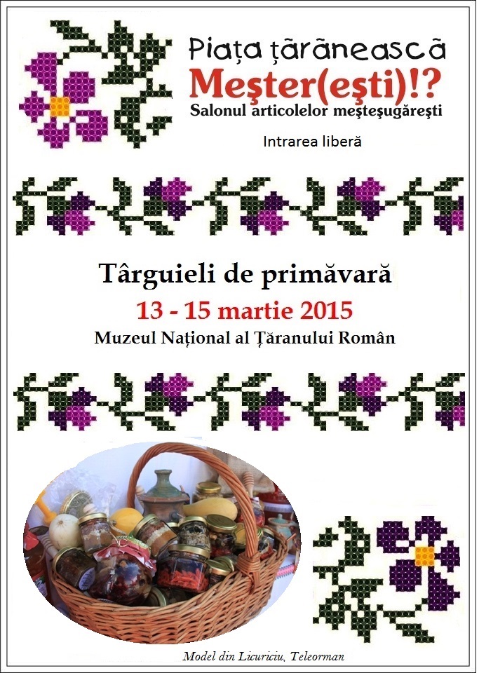 Piaţa Ţărănească şi Meșter(Ești)! vă invită în perioada 13 – 15 martie 2015, la Târguieli de primăvară, în curtea interioară a Muzeului Naţional al Ţăranului Român.